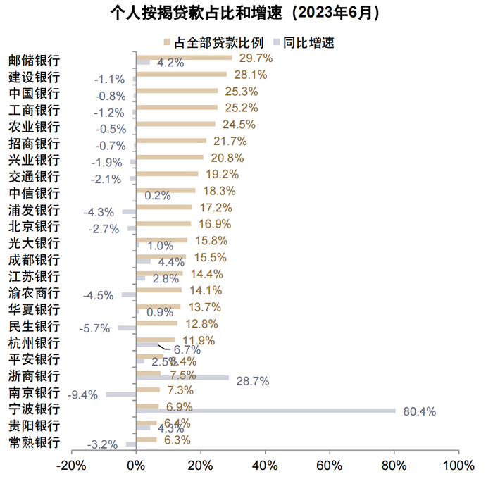 图表:国有大行按揭贷款占比较高,股份行对公房地产贷款占比较高