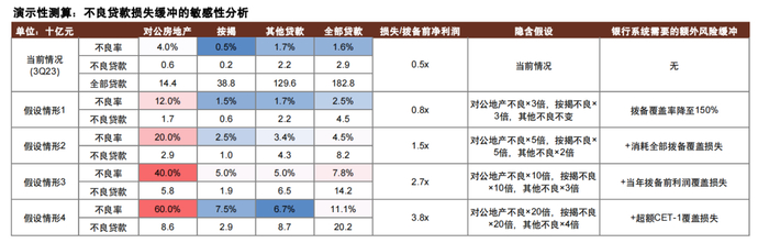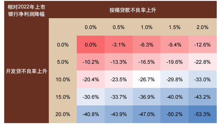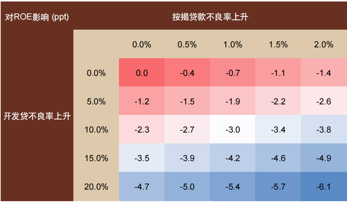 注:使用2022年末数据;假设按揭贷款损失率为50%,开发贷损失率为70%,所得税率25%,以上仅为敏感性分析,不代表具体情形