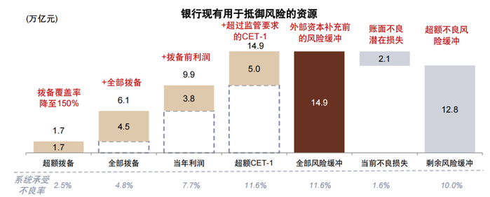 图表:银行可使用拨备、利润和资本抵御不良上升的风险