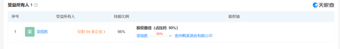 天眼查显示,梁国胜持鸭溪酒业95%的股权,为其受益所有人。