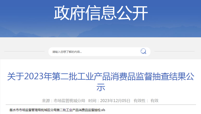 河北省衡水市市场监督管理局桃城区分局公示2023年第二批工业产品消费品监督抽查结果