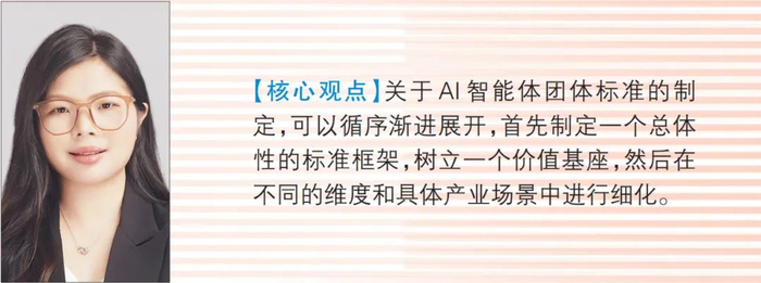 当前,在技术驱动和资本市场助力之下,AI智能体正与医疗、交通、教育等行业场景加速融合渗透与落地。在AI智能体创新发展进程中,多智能体的协同及人机交互型混合智能体在复杂环境中的场景化应用正面对着诸多新型问题和挑战,工具理性与主体理性、商业价值与伦理价值之间的张力凸显。目前,国内并没有专门针对AI智能体技术创新、产业发展和伦理规范的团体标准,权威标准的缺失导致方向引领性不明晰,也会影响业界创新成果的发展协同和产业生态的和谐共生,从而致使社会治理的总体效能无法提升。