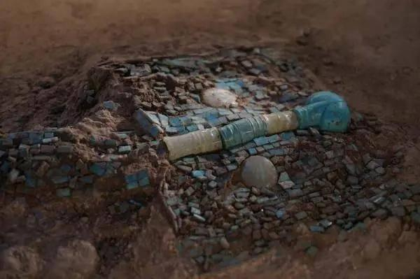至今,展现在博物馆里的绿松石龙,依然没有从泥土里完整地提取出来,下半部分仍埋在土里,部分地保持着三千多年来的保存状态。这是由于其独特的构造和保存条件决定的,但无意中,也让这件国宝保持住了浓厚的考古味儿,呈现了与其他任何国宝不同的风格。