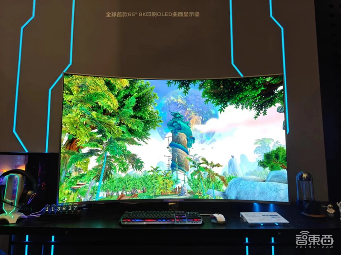 TCL华星发布的全球首款65英寸8K印刷OLED显示器是一款大尺寸曲面电竞显示器,从某种程度上来说也可以作为电视使用。印刷OLED的技术在PPI上有比较明显的优势,据称PPI同比提升达到了3倍,同时开口率提升了50%,寿命更长,发光材料利用率也超过了90%。