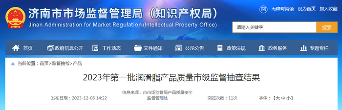【济南】2023年第一批润滑脂产品质量市级监督抽查结果
