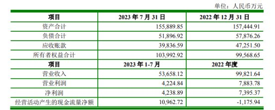 无锡雄伟2022年营业收入为99,821.64万元,净利润为7,395.37万元,经营活动产生的现金流量净额为-1,175.94万元;2023年1-7月营业收入为53,658.12万元,净利润为4,238.89万元,经营活动产生的现金流量净额为10,962.72万元。