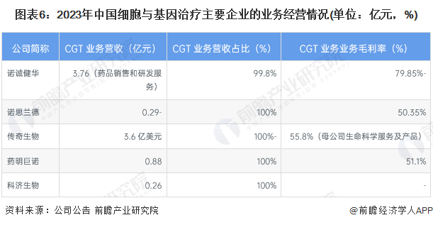 3、细胞与基因治疗(CGT)行业上市公司业务业绩对比