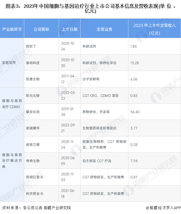 【最全】2023年中国细胞与基因治疗(CGT)行业上市公司全方位对比(附业务布局汇总、业绩对比、业务规划等)