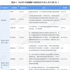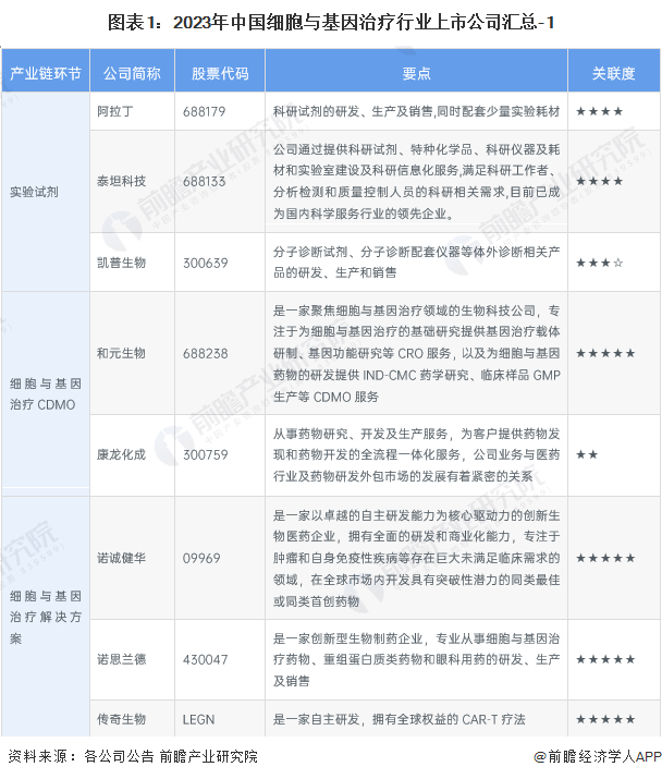 1、细胞与基因治疗(CGT)行业上市公司汇总