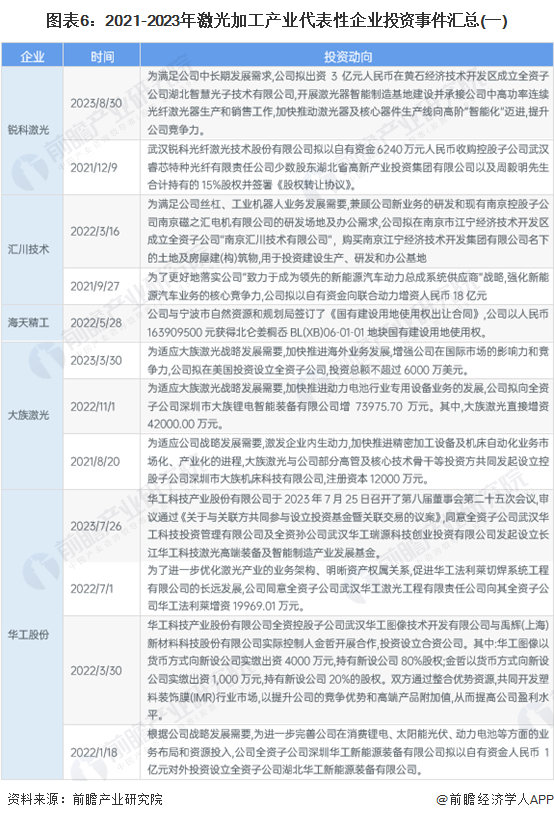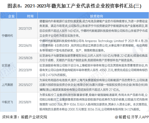 2021-2023年激光加工设备产业代表性企业的投资事件汇总如下: