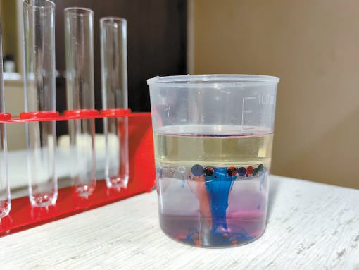 “科学盒子”中提供的“彩色珍珠雨”实验,利用食用油、水和色素制造多彩的实验现象。