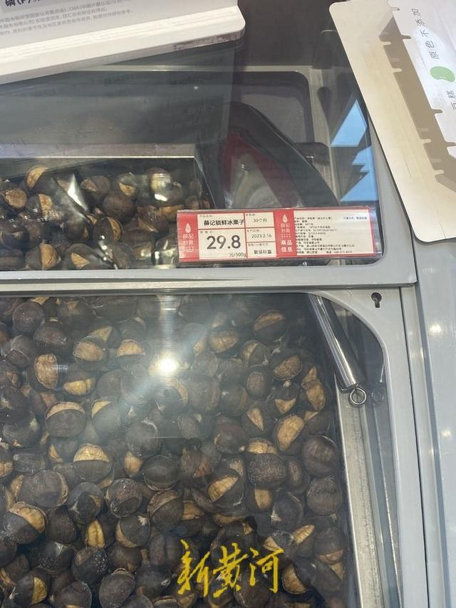 走进薛记炒货店,醒目处可以看到放置着的冰箱,冰箱内是标价29.8元一斤的薛记锁鲜冰栗子。王兵曾是薛记栗子的忠实粉丝,在他眼里,“这栗子跟别的不一样,又软又糯。”12月2日下午,王兵跟往常一样,又在薛记炒货里先是转了一圈,而后称了一斤栗子,他一边在收银台结账,一边询问店员:“你们这是冷冻后直接烤的?不是鲜栗子炒的?”店员回复他“独有的锁鲜技术,即食加工。”