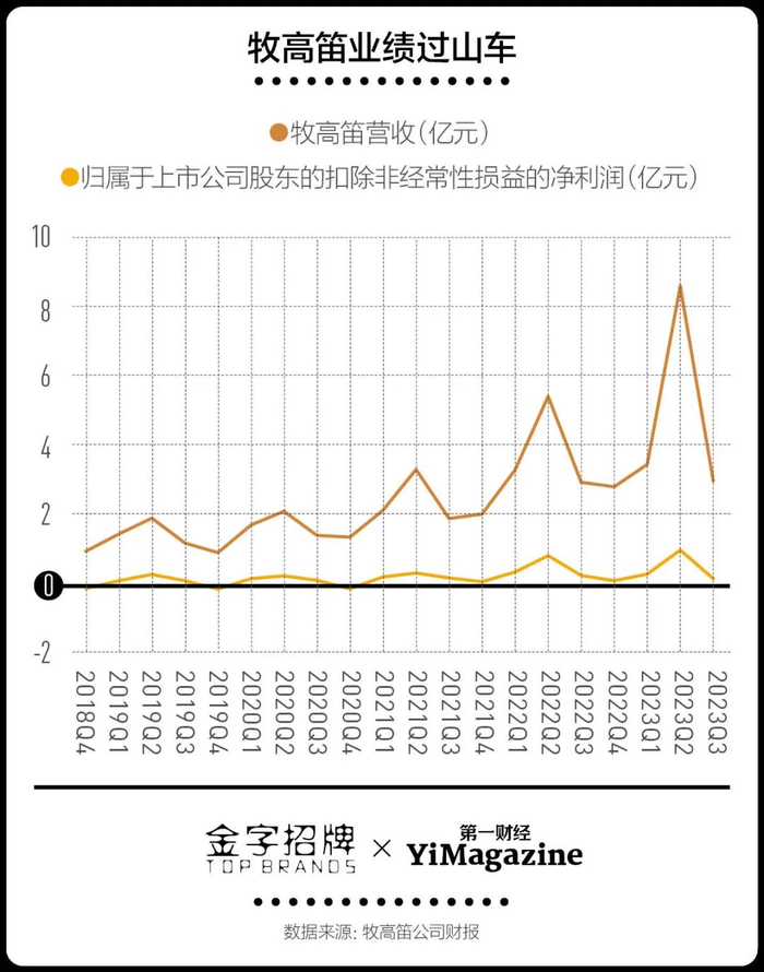 最典型的案例是上市公司牧高笛,这家公司的市值在新冠疫情期间快速增长。2019年年底,牧高笛市值不到20亿元,2022年曾经超过70亿元。今年开始,牧高笛结束了高增长期,上半年归属于上市公司股东的净利润同比减少14%,市值也回落到了27亿元。