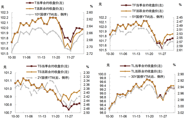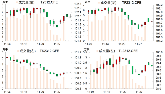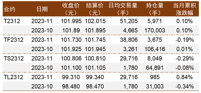 图表2:11月中长期限国债期货整体走强,短期限合约走弱