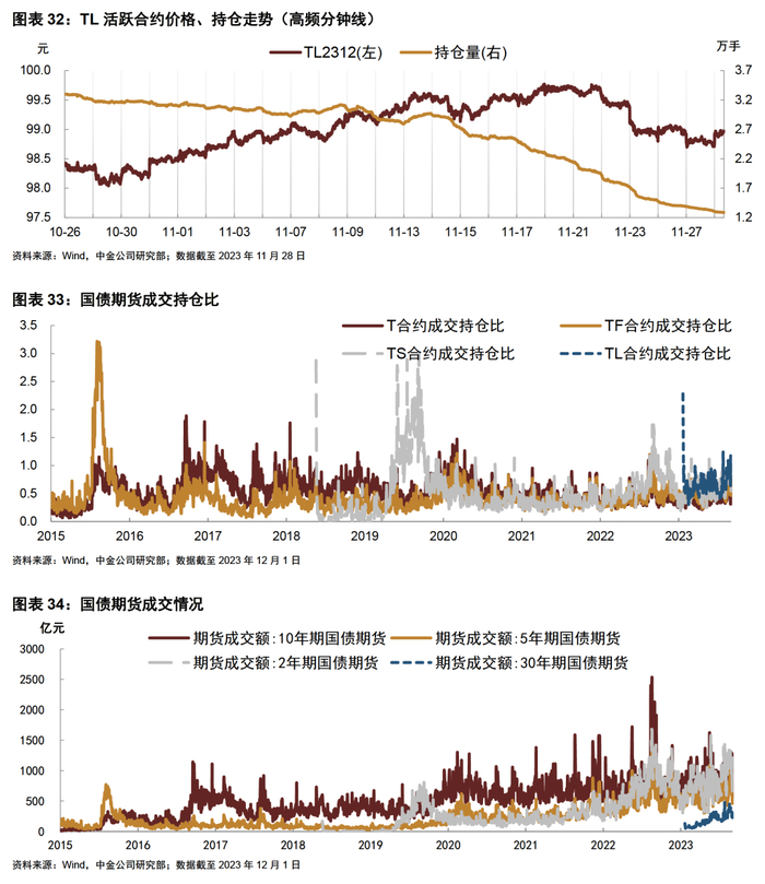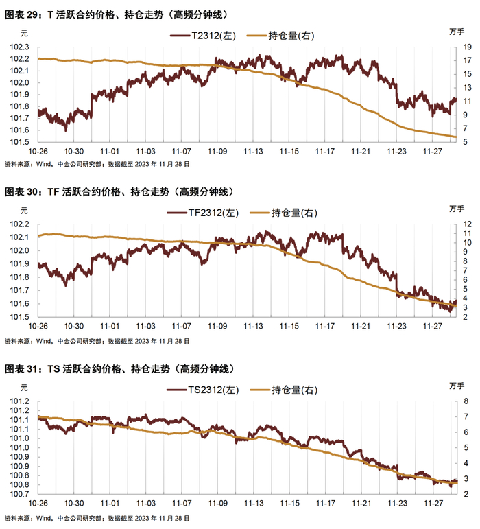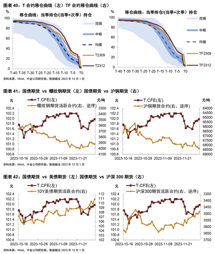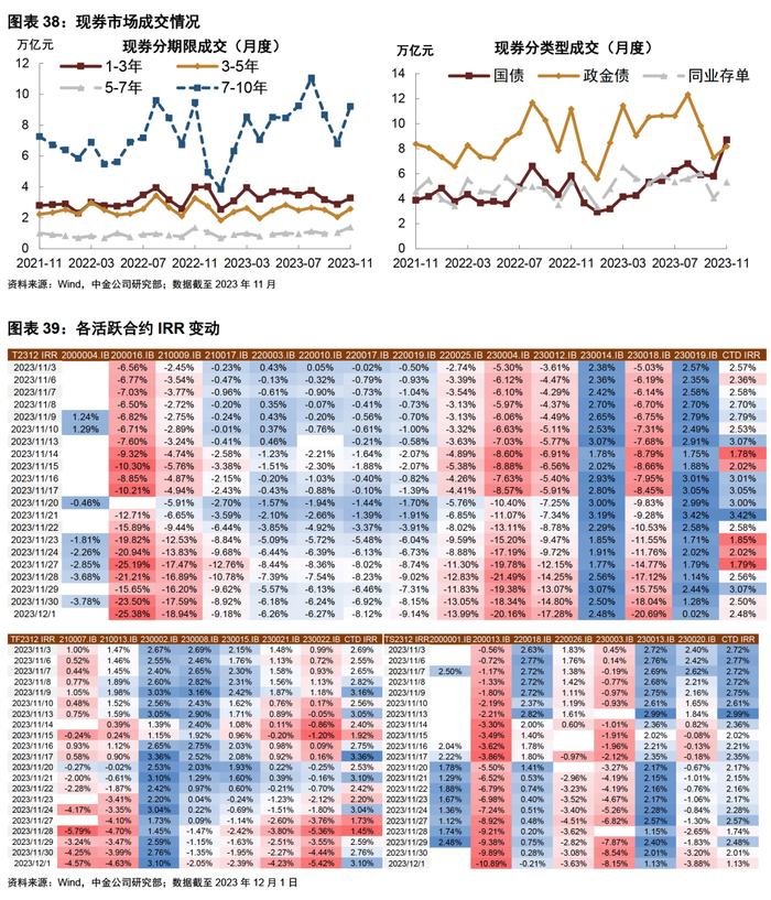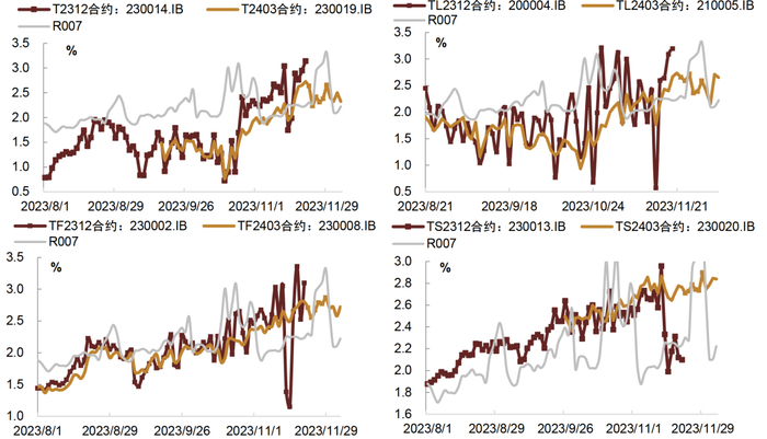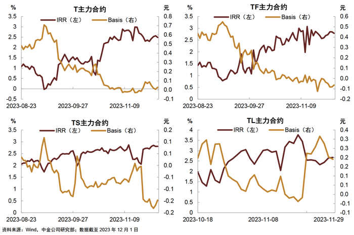 注:T2312合约:230014.IB代表该期货合约的最常见活跃CTD为230014.IB,2023年11月22日起主力合约切换至T2403,其他期限同理,数据截至2023年12月5日;IRR水平采用中债估值计算,下同;