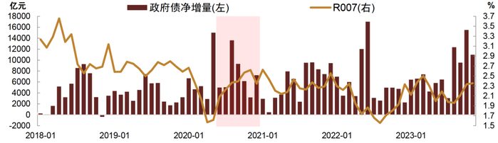 图表9:政府债月度净增量和资金价格