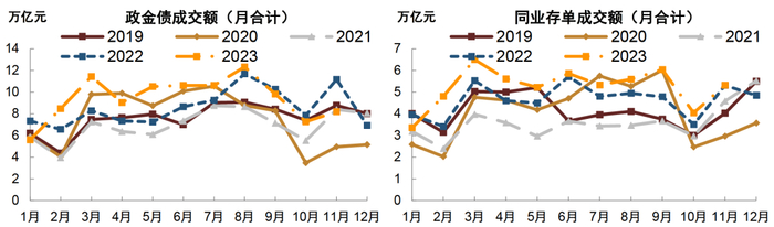 10月国庆节后,各省市开始陆续发行特殊再融资地方债,阶段性推升政府债券供给,与此同时,节后大量OMO到期下,央行持续净回笼,银行间流动性供给紧张,资金利率边际抬升。10月24日,在前期大量再融资地方债集中供应的基础上,全国人大批准国务院增发国债和2023年中央预算调整方案的决议,决定将在今年四季度增发国债一万亿元,作为特别国债管理,政府债供给压力进一步增加,加大了资金面的不确定性,叠加跨月影响,资金利率中枢维持高位震荡,IRR被动跟随走高。11月初资金面供需压力有所缓解,但此后随着特别国债消息落地后关键期限国债开始发行,资金面维持紧平衡、存单利率处于相对高位,IRR延续此前升势。