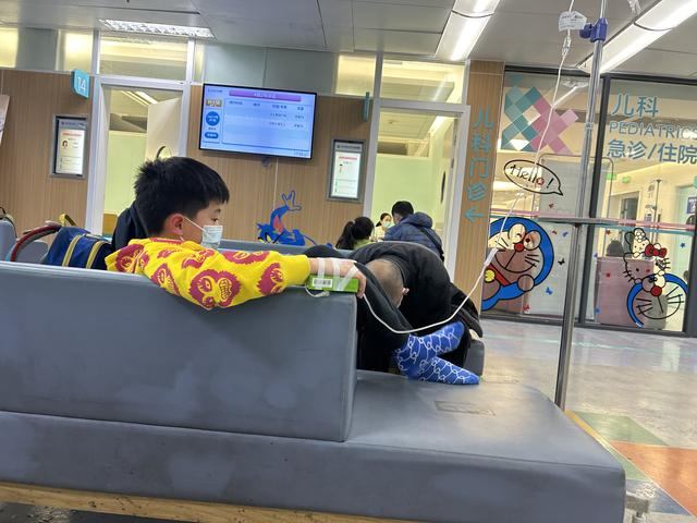 相比前一阶段肺炎支原体感染引发大量肺炎患儿,近期流感患儿较多,输液区的患儿数量暂时有所下降。“这可能与流感以服药为主有关,肺炎支原体感染相对比较复杂,病程长,病情复杂,需要补液治疗的时间较长,所以现在看病速度会相对快些,积压在医院的人数少了一些。”她说。