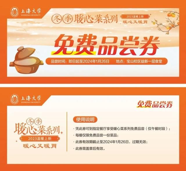 暖心福利:你最想品尝哪道菜?欢迎在评论区留言,本篇推文留言点赞前10名的师生(截至2023年12月10日12:00),每人可领取3张暖心菜系列免费品尝券~唯有美食不可辜负,快来点赞评论吧!