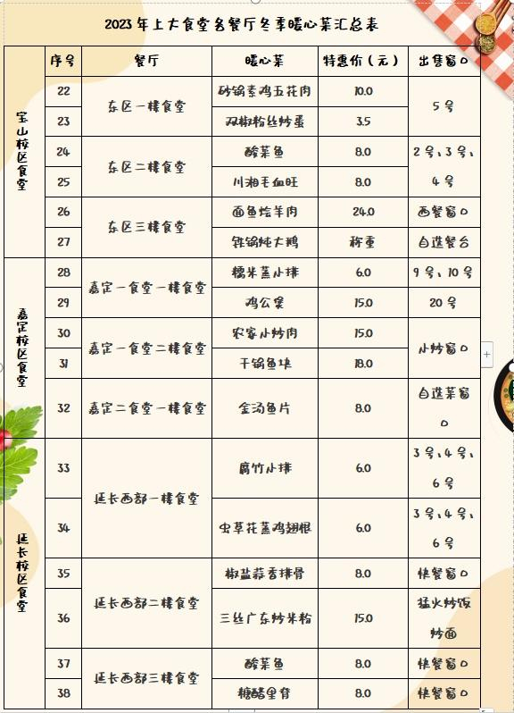 2023上大食堂各餐厅暖心菜汇总