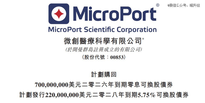 微创医疗计划购回前期发行2026年到期的零利息7亿美元可转换债券,同时计划发行2.2亿美元的2028年到期5.75%年化利率可转换债券;简而言之,就是“借新还旧”。