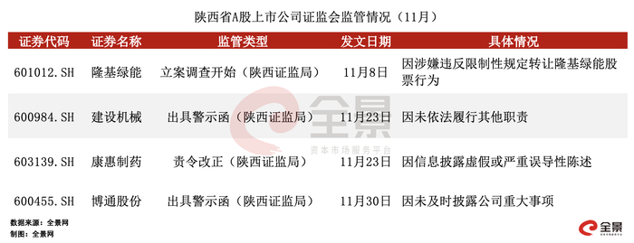 同时,陕西省共有4家A股上市公司收到地方证监局监管函件,涉及未依法履行职责、信息披露虚假或严重误导性陈述等。