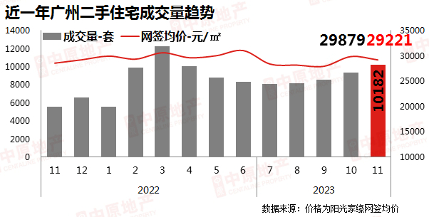 广州中原研究发展部披露,11月广州二手房成交量10182套,环比上涨8.77%,再次冲破了万套。