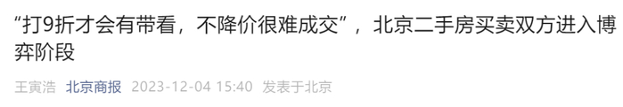 12月4日,北京当地官媒北京商报发表了一篇北京楼市当下现状的文章。