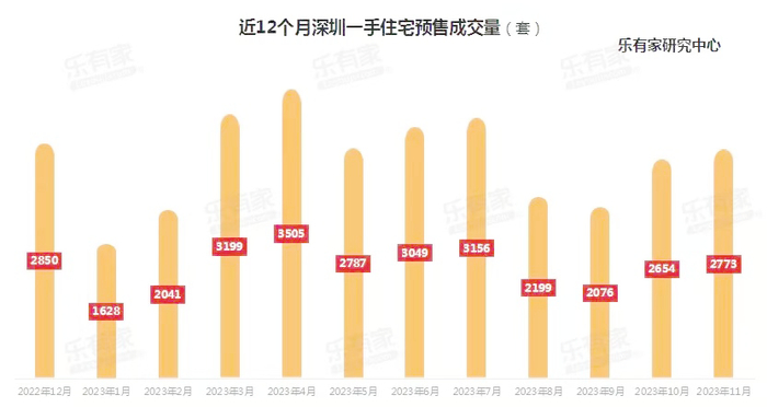 11月深圳一手住宅预售成交2773套,环比上涨4%,连续“两连涨”。