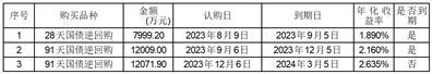 注:截至公告日,公司使用闲置自有资金进行国债逆回购尚未到期的金额合计为12071.90万元。