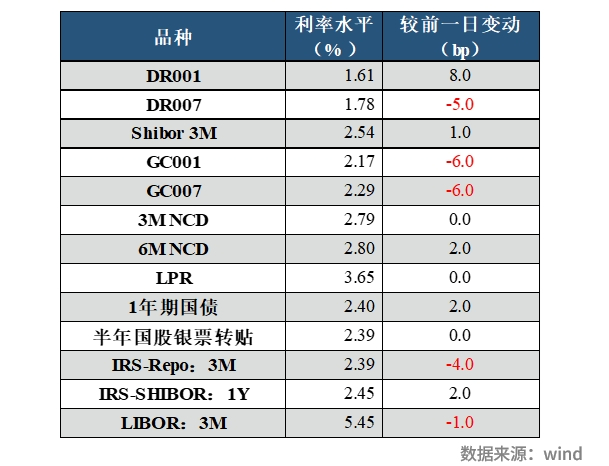 周三(12月6日)货币市场资金面整体均衡。DR001报1.61%,较前一个交易日上升8.0bp;DR007报1.78%,较前一个交易日下降5.0bp;Shibor 3M报2.54%,较前一个交易日上升1.0bp。