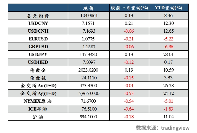 周三(12月6日),美元兑人民币中间价报7.1140,较上个交易日下行13pips。美元兑人民币收盘7.1571,较上一交易日升下行151pips。截止北京时间16:30,离岸美元兑人民币报7.1693,目前两岸汇差在122pips。美元指数小幅升值,截至北京时间16:30为104. 0861。