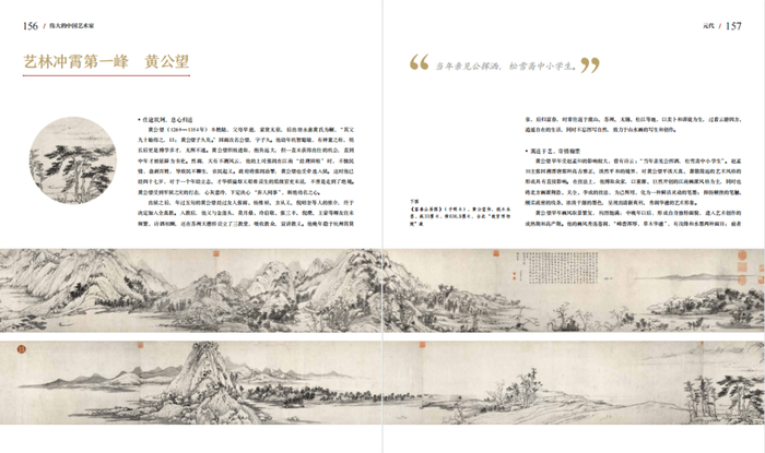 图文并茂,结合超长拉页思索创作心得,读者更能领略黄公望技法之妙,再联想艺术家由坎坷至淡然的一生,更能体会境界之洒脱高远。