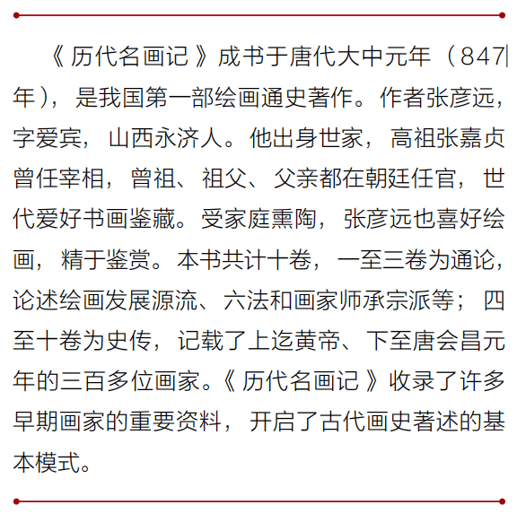 按照朝代顺序,作者对每位画家都根据特点做了简要归纳。