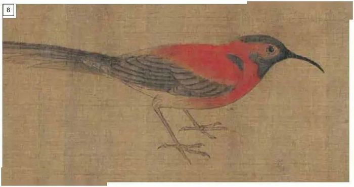 《写生珍禽图》,(传)五代 黄筌,绢本设色,纵41.5厘米,横70.8厘米,故宫博物院藏