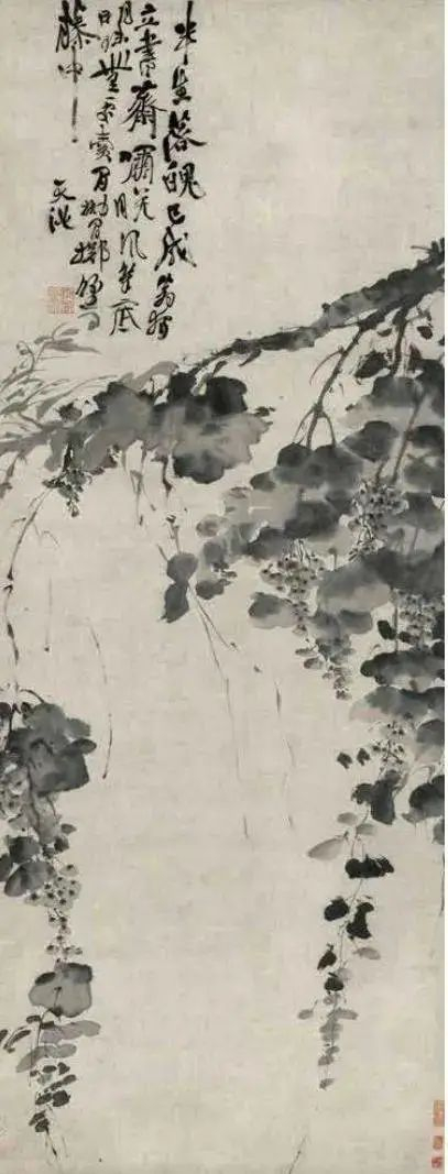 《墨葡萄图》,明 徐渭,纸本水墨,纵165.4厘米,横64.5厘米,故宫博物院藏