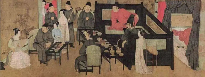 《韩熙载夜宴图》(局部)(传)五代 顾闳中,绢本设色,纵28.7厘米,横335.5厘米