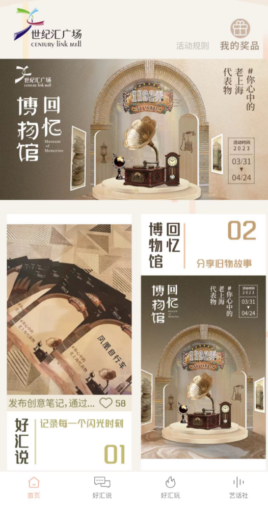 除此之外,为让更多人能参与到文化活动中,世纪汇在今年特别推出了“世纪汇品牌互动专区”小程序,通过OMO(online-mobile-offline)的体验式场景,让人人都可以参与。
