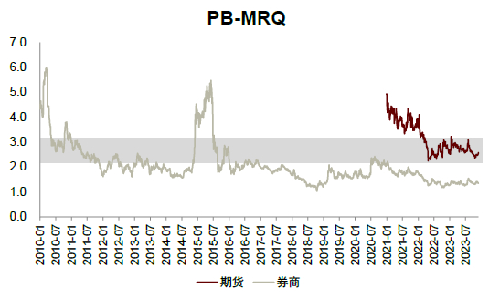 图表:期货行业估值水平与2012年之前的券商相似