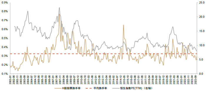 图表:H股市场换手率及估值均处于偏底部水平