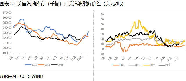新年度,调油需求仍会有一定空间,但影响将边际减弱,海内外多套装置将逐步回归,预计2024年PX进口量将有所回升。一方面,美国解除委内瑞拉石油制裁后,其国内补充重质组分后高辛烷值夏季调油组分供应有望上升,对汽油调和组分的进口量将有所下滑;另一方面,经之前经验,美国去年就已提前做准备,签订部分芳烃长约,今年亦会如此,预计年底到明年年初就会有不少芳烃从亚洲运输到欧美进行罐装储存。此外,下游PTA投产继续,需求端有一定拉动,且台化及逸盛投产后,海外同源炼厂进口量或增加。