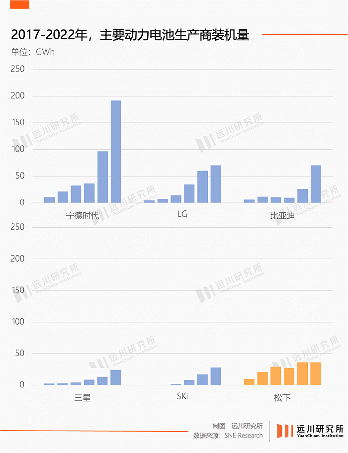 目前,松下从当年全球第一大动力电池生产商的位置上,滑落到了第五名。当然,第五名成绩虽然也不差,但无论是产能扩张的速度,还是收入增长的步伐,松下都被远远的甩在了后面。