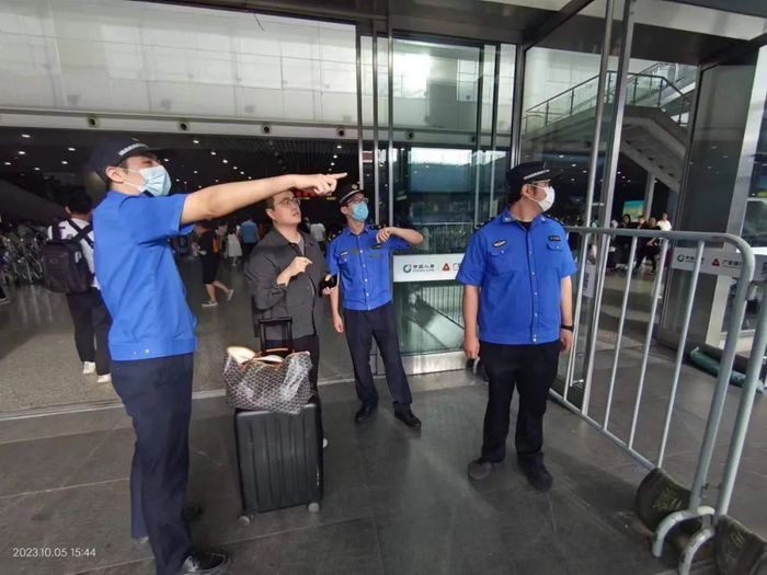 我们配合增配数百名临时特保和城市文明志愿者,做好枢纽区域的现场管理、秩序维护、道路指引,为奋战一线的前方提供最坚实的关怀保障。