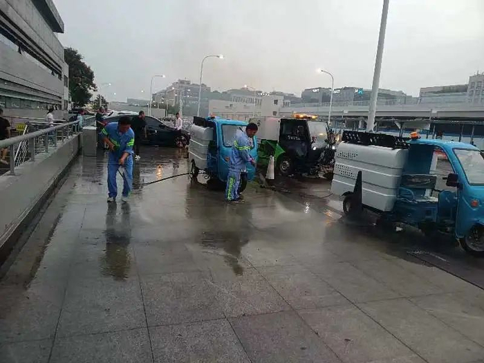 市容环境上,在建虹路、扬虹路、申虹路等枢纽周边重点主干道加强道路保洁,运用“人机结合”“四巡回四普扫” 的清扫模式,高标准保障双节期间枢纽周边市容整洁有序。