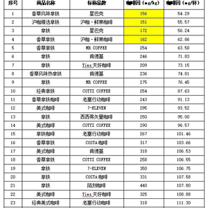 咖啡价格、各品牌杯型容量