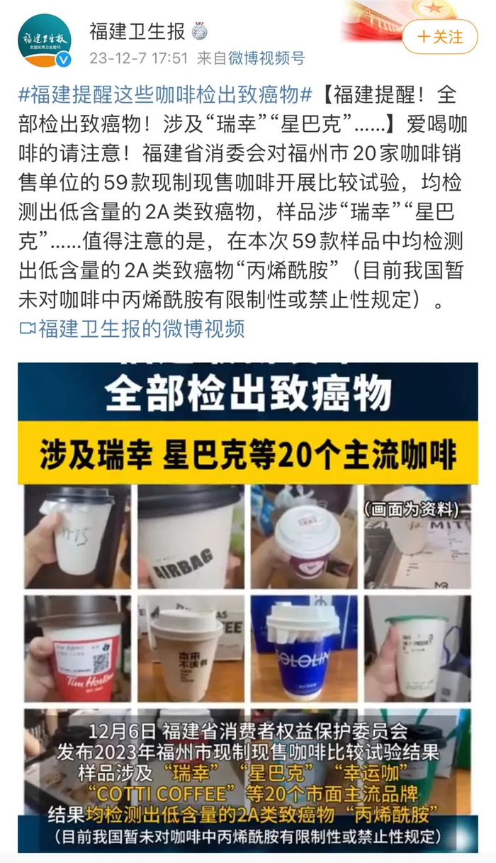 检出2A类致癌物!涉瑞幸、星巴克……