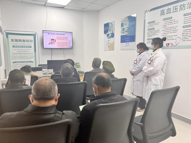就在杨明给何大爷打电话的时候,旁边的宣教室里,镇上十多位有高血压的老人正在听医生讲课,告诉他们平日里怎么健康生活。