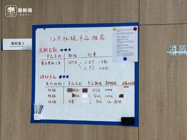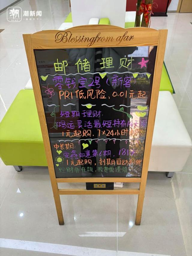 在邮储银行的网点,一进门记者就看到一块产品宣传展板,上面推荐了三款理财产品,分别为新客零钱宝、最短持有14天的短期和181天的中长期理财产品。工作人员介绍称,一年期和三年期的存款利率分别为1.85%和2.6%,且该行暂时没有大额存单可售。