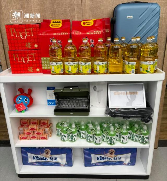 记者进入大堂,看到大堂左侧的展台上,摆放着大米、沐浴露、牙膏等各式各样的生活用品。客户经理说,存款2万元以上送一袋大米。这时,旁边有一位老年人询问:“还有油吗?”,客户经理称油已经全部送完。