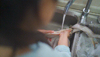 1.带鱼去除头、尾、内脏,清洗干净,鱼身两侧改上花刀方便入味。